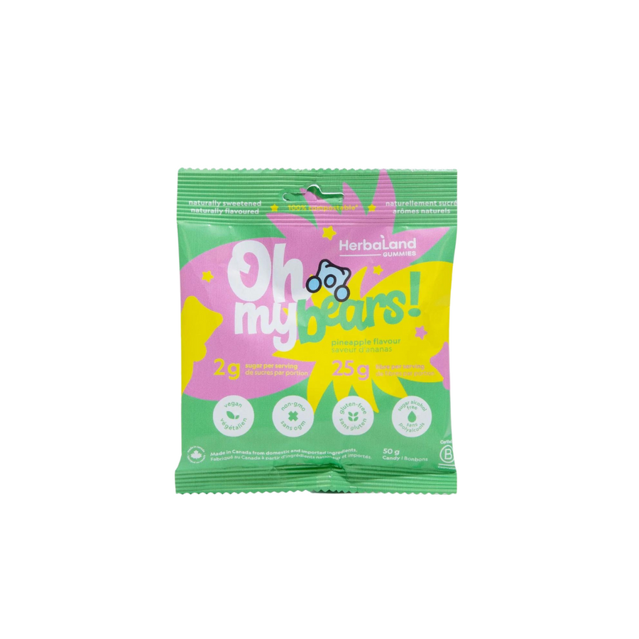 Oh my! These gummies are the best candy around, with only 2g of sugar and 25g of fiber per pouch. Made from plant-based ingredients and all-natural flavours, these gummies are the perfect healthy snack!