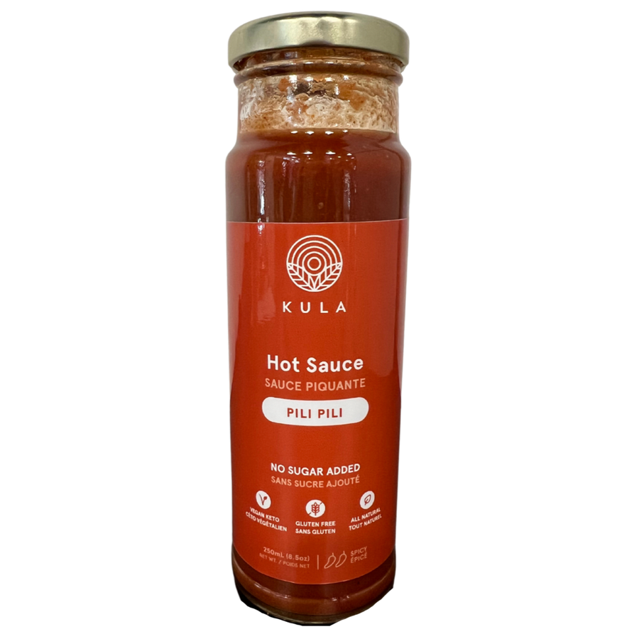 This fiery sauce is a spicy food lover's dream, inspired by a traditional East African recipe. It is made with a blend of filtered water, tomatoes, unfiltered apple cider vinegar, garlic, fresh lemon juice, sea salt, extra virgin olive oil, and a mix of spices. This flavorful sauce is the perfect addition to any dish, whether you enjoy spicy food or simply want to add some heat to your meals. It is a must-try for those looking to explore new flavors. With a focus on Afro-Veganism, Kula is connect our communities through conscious sustainability and the love for great plant-based food!