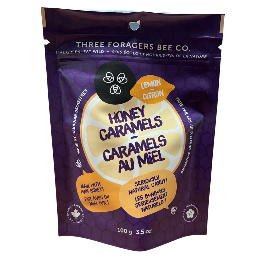 Relish the natural sweetness of Three Foragers Bee Co.'s Honey Caramels. Made with pure Canadian honey and free from refined sugars, these caramels offer a guilt-free indulgence that's as wholesome as it is delicious. Three Foragers is based in the wide open prairies surrounding Saskatoon, Saskatchewan and the rich forests in the Cowichan Valley of Vancouver Island, BC.